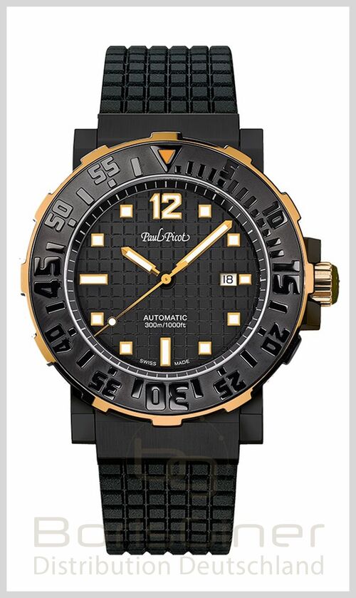 | Besonderheiten | Die Uhr wird in der wasserfesten Le Plongeur Box mit zusätzlichem Kautschuk-Band, Reinigungstuch, Korrektur-Werkzeug und Paul Picot Victorinox Messer geliefert |