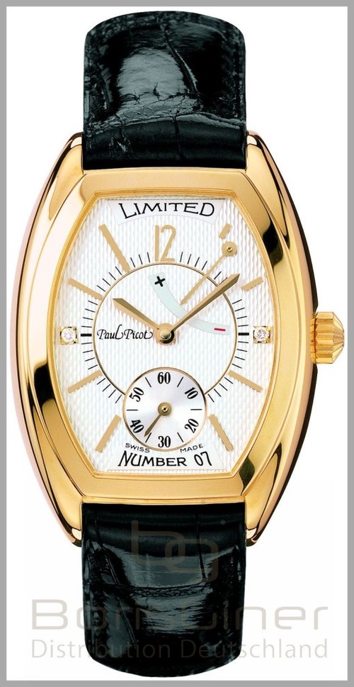 | Besonderheiten | Die limitierten Basis-Rohwerke stammen aus dem Produktionsjahr 1937 und wurden von den Meisteruhrmachern bei Paul Picot neu aufgebaut und als zusätzliche Komplikation mit der Anzeige der Gangreserve ausgestattet. Die Uhr ist mit einer für die damalige Zeit einzigartigen Stoßsicherung ausgestattet. Das Zifferblatt ist aus Massivsilber mit aufgesetzten Indizes und hand-guillochiert. Die Uhr besitzt ein Formwerk speziell für die Tonneau-Bauart und eine gewölbtes und verschraubtes, wasserdichtes Saphir-Uhrglas, sowie Saphir-Glasboden. Jedes Werk und Gehäuse ist nur in limitierter Auflage erhältlich und individuell nummeriert. |